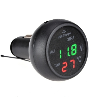 รายละเอียดสินค้า New 3in1 Car LED Voltmeter Digital Thermometer Car Battery Monitor Car Mounted Charger - intl